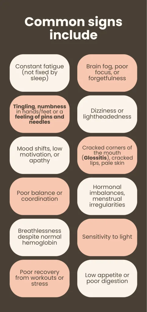 This is why B12 deficiency can masquerade as “stress” or “weakness,” but physiologically, it’s much deeper.